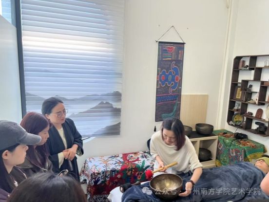 在体验环节,师生们闭上眼睛,静静地感受颂钵发出的深沉、悠扬的声音。这种独特的声音仿佛有着神奇的魔力,引导大家进入放松状态,让心灵沉浸其中。"这是我第一次亲身感受颂钵,那种声音的振动仿佛直接穿透身体,让人不由自主地放松下来。"一位音乐专业的学生在体验后感慨道。王老师向学生们演示了如何通过钵音的振动,帮助人们"聆听自我内心声音节奏,感受自己身体部位松弛程度",从而达到身心的放松与平衡。